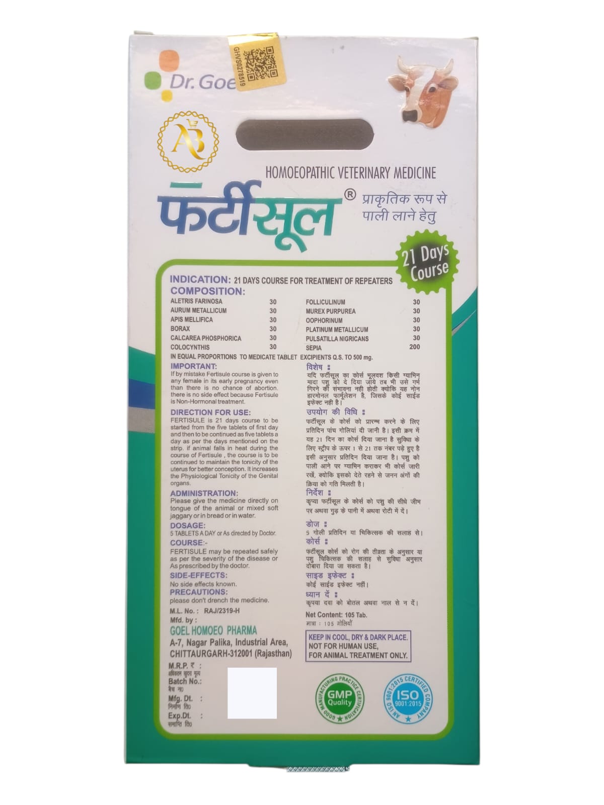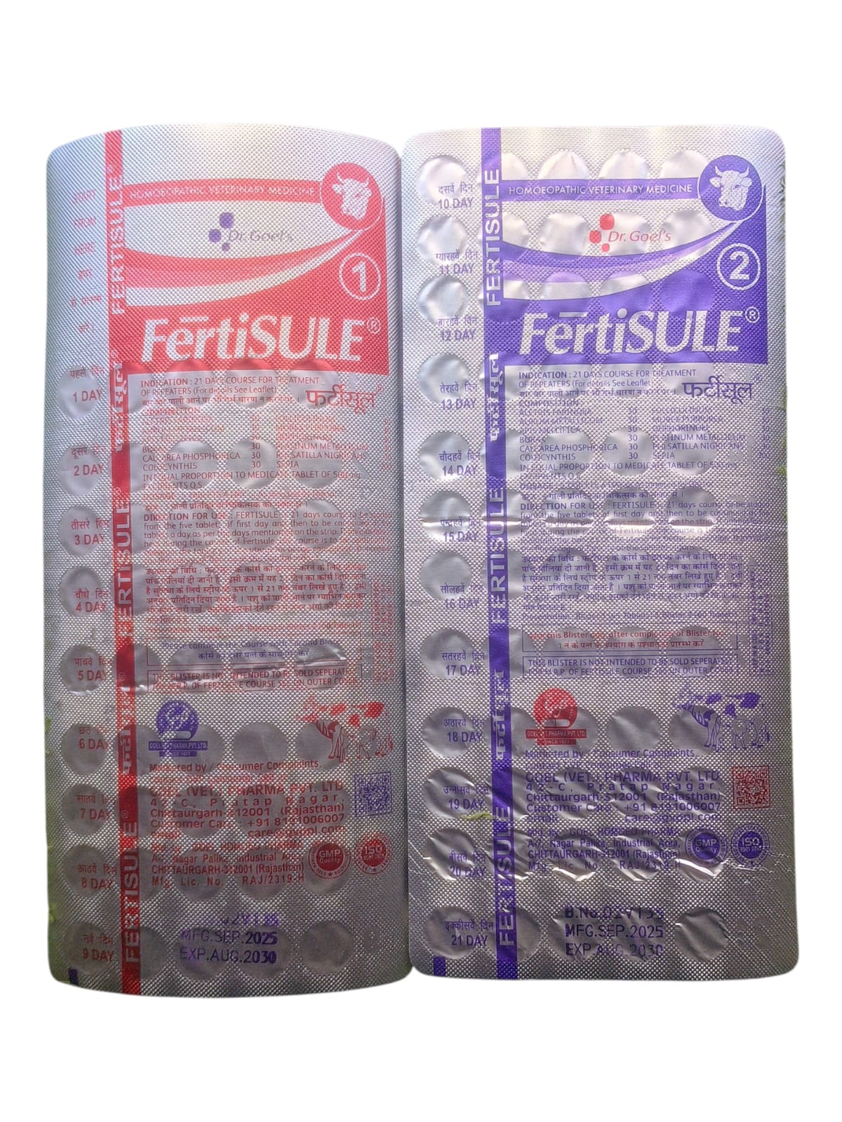 FERTISULE is 21 days course to be started from the five tablets of first day and then to be continued as five tablets a day as per the days mentioned on the strip. if animal falls in heat during the course of Fertisule, the course is to be continued to maintain the tonicity of the uterus for better conception. It increases the Physiological Tonicity of the Genital organs.